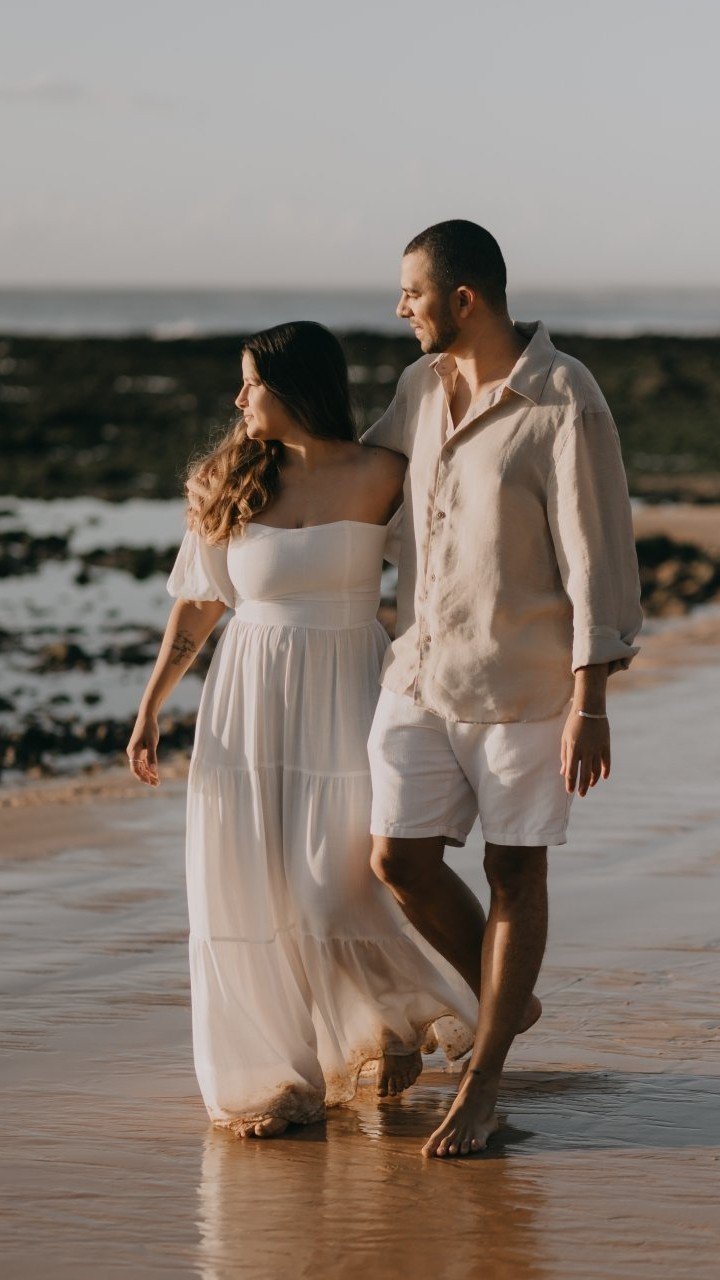 Faremos uma celebração íntima, rápida e significativa no próprio local da festa. Não haverá elementos religiosos — apenas um momento especial para marcar nossa união junto das pessoas que mais amamos.